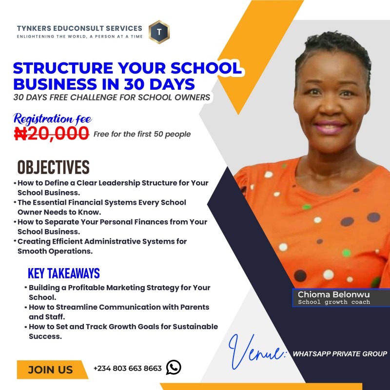 Discover proven strategies to increase your school’s profitability and streamline operations. With Chioma Belonwu’s expertise, unlock new growth opportunities and achieve long-term success.